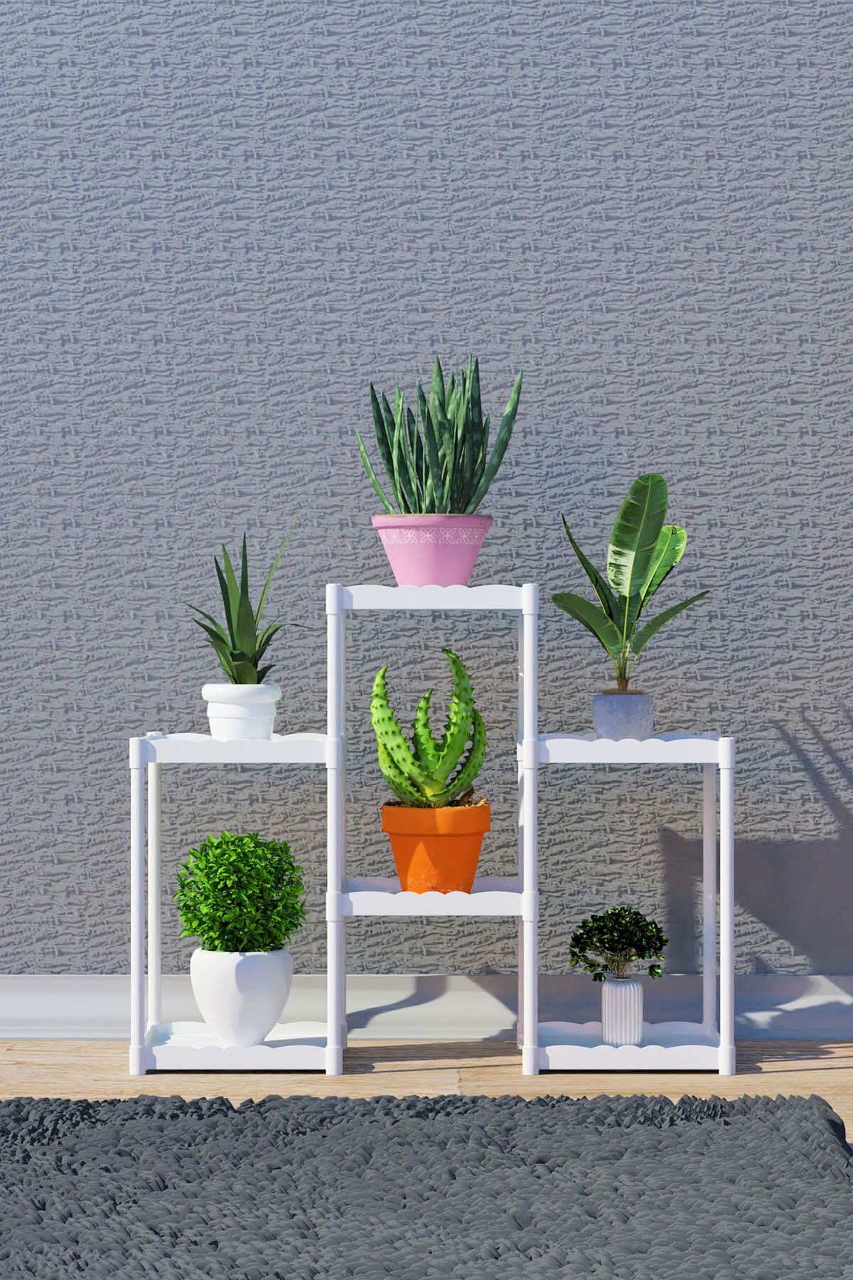 Işıl 6 Raflı Plastik Saksılık Dekoratif Çiçeklik Saksı Standı 222_k_s